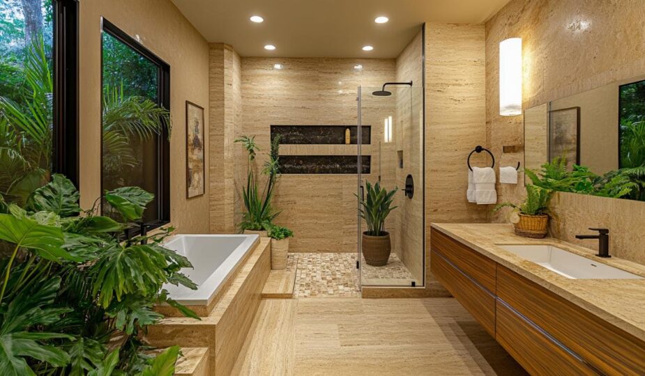 Les atouts du travertin et du bois dans une salle de bain